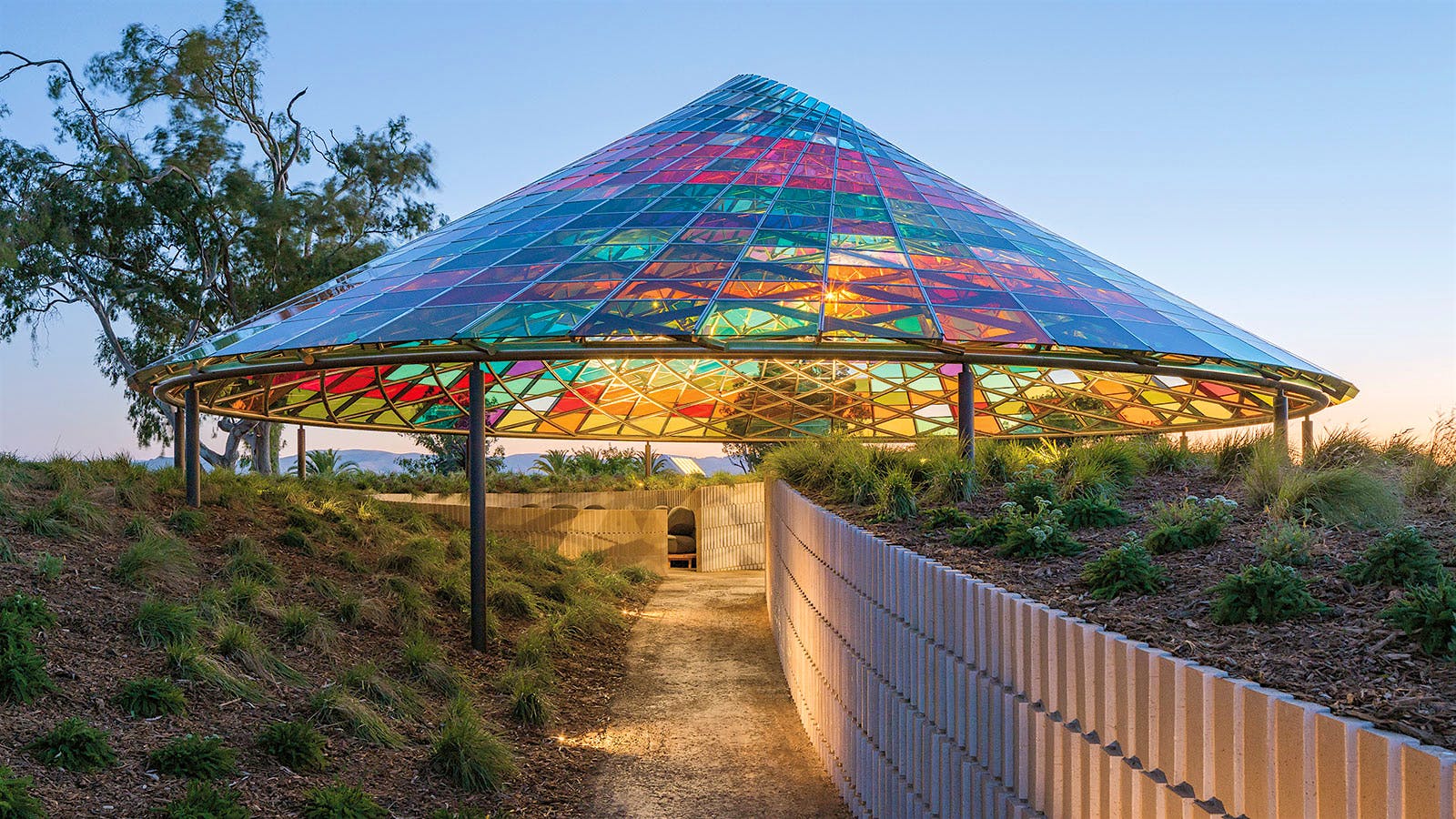 Donum Estate, a Carneros Pinot Noir producer, has welcomed a new, mosaic structure: the Vertical Panorama Pavilion. Unveiled in August, the pavilion was designed by Berlin-based Studio Other Spaces, a collaborative firm founded by artist Olafur Eliasson and architect Sebastian Behmann. Learn more about the design process, and see pictures of the finished structure!